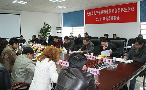 2011年1月20日,北部灣電子信息孵化器初創(chuàng)型科技企業(yè)2011年新春座談會(huì)在中電北海產(chǎn)業(yè)園會(huì)議室舉行。北海市科技局局長(zhǎng)黃健、北海市工業(yè)園區(qū)管委會(huì)副主任王剛、中電北海產(chǎn)業(yè)園常務(wù)副總經(jīng)理索耀宗、以及9家入孵企業(yè)負(fù)責(zé)人一起,暢所欲言,共話新春。