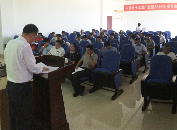 2016年6月3日下午,以“強(qiáng)化安全發(fā)展觀念,提升全民安全素質(zhì)”為主題的中國電子北海產(chǎn)業(yè)園2016年安全生產(chǎn)動員大會在園區(qū)職工之家舉行,21家入園企業(yè)50余人參加了會議。
