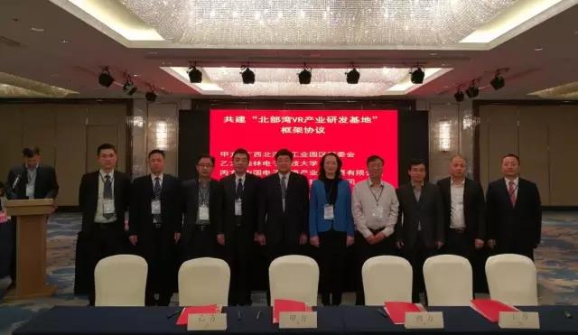 2017年1月8日,在深圳召開的“廣西電子信息產(chǎn)業(yè)桂電校友招商引資懇談會”上,在自治區(qū)工信委徐莉青副主任、北海市委常委、副市長曾子祥,桂林電子科技大學校長古天龍等領導見證下,桂林電子科技大學、北海工業(yè)園區(qū)管委會、中國電子北海產(chǎn)業(yè)園公司與北京幻鯨數(shù)字科技有限公司簽署合作協(xié)議,建設北部灣VR產(chǎn)業(yè)研發(fā)基地,標志著中國電子北部灣信息港軟件研發(fā)版塊進入新的發(fā)展階段。