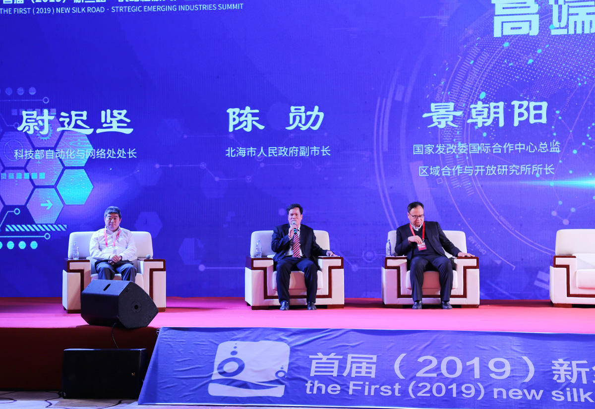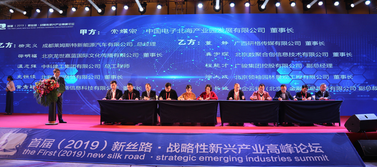 2019年1月10日,以“創(chuàng)新引領戰(zhàn)略性新興產(chǎn)業(yè)”為主題的首屆(2019)新絲路·戰(zhàn)略性新興產(chǎn)業(yè)高峰論壇在北海舉行。外貿(mào)部原副部長周可仁、市長蔡錦軍、中電北海產(chǎn)業(yè)園公司董事長索耀宗出席論壇并致辭。有關國家部委領導、院士專家、行業(yè)組織的代表,新一代信息技術、智能制造、大健康、影視文化等國內(nèi)外企業(yè)家以及金融投資機構(gòu)負責人、媒體機構(gòu)代表、科研院所代表500多人參加了此次盛會。