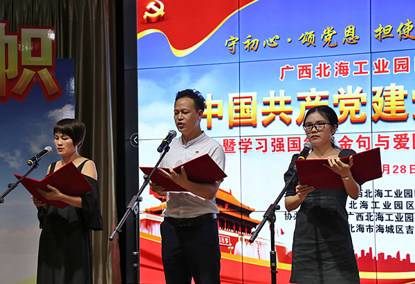 2020年6月28日下午,廣西北海工業(yè)園區(qū)迎慶中國(guó)共產(chǎn)黨建黨99周年暨學(xué)習(xí)強(qiáng)國(guó)每日金句與愛(ài)國(guó)詩(shī)詞朗誦讀比賽在工業(yè)園區(qū)舉行。中國(guó)電子北海產(chǎn)業(yè)園聯(lián)合黨支部組織支部黨員及代表參賽,經(jīng)過(guò)精彩角逐,榮獲比賽二等獎(jiǎng)。